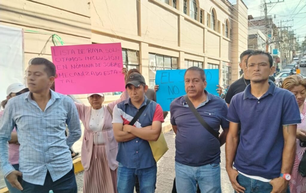 Durante la protesta, los manifestantes colocaron pancartas y lonas en la puerta principal de las oficinas, pidiendo la intervención del gobierno del estado para resolver la situación de manera inmediata.