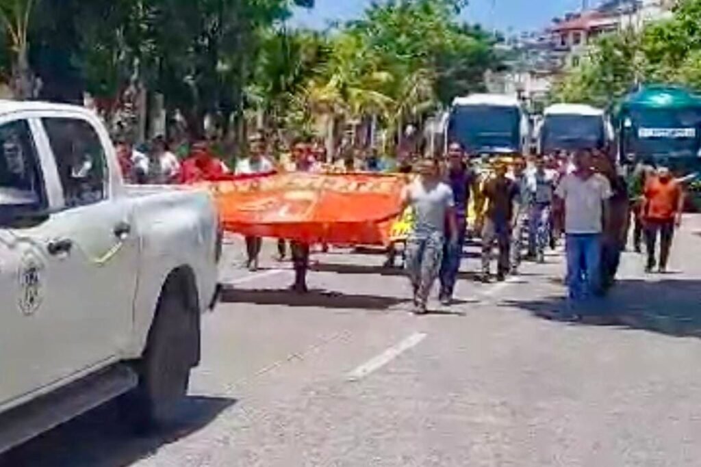 Un grupo de estudiantes de Ayotzinapa realizaron una marcha y manifestación en el centro de Acapulco, avanzando por la avenida Costera Miguel Alemán desde el Palacio Federal hasta el Antimonumento de los 43, ubicado en la intersección con la Vía Rápida.