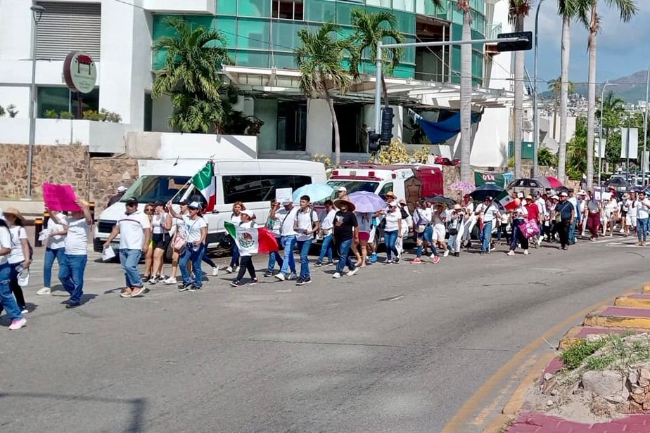 El contingente de aproximadamente 150 personas se reunió aún costado del centro de congresos Costera 125 y avanzó en dirección a la plaza Francia, ubicada frente al Centro de Convenciones de Acapulco.