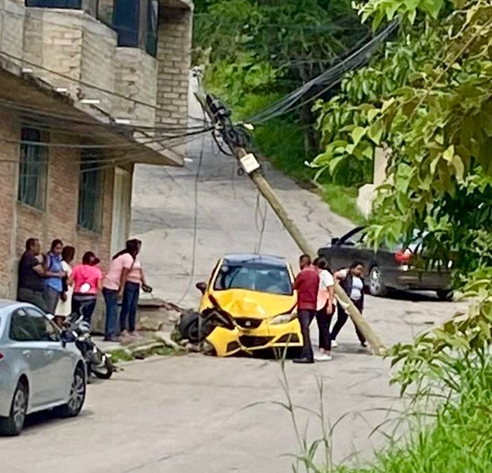 Un choque de un automóvil contra un poste de la empresa Teléfonos de México (Telmex), ocurrido sobre la calle Uva de la colonia Balcones de Tepango, en Chilpancingo, dejó daños materiales por varios miles de pesos.