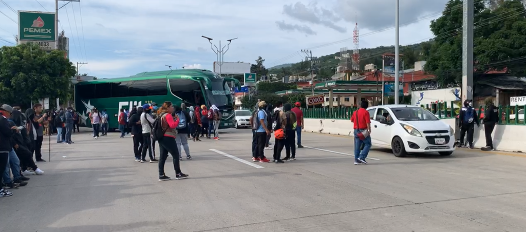 Este jueves por la tarde los normalistas de cuarto grado viajaron desde sus instalaciones en Tixtla a esta capital a bordo de 4 autobuses que han retenido desde hace un mes y que serán utilizados para sus movilizaciones por el décimo aniversario de la desaparición de 43 de sus compañeros en Iguala.
