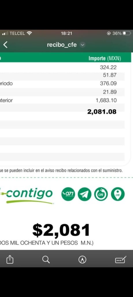En el caso de Ofelia, una de las afectadas, indicó que normalmente paga menos de 400 pesos bimestrales a la CFE y en esta ocasión le llegó el recibo de mil 767 pesos, lo que representa un aumento de 441 por ciento.