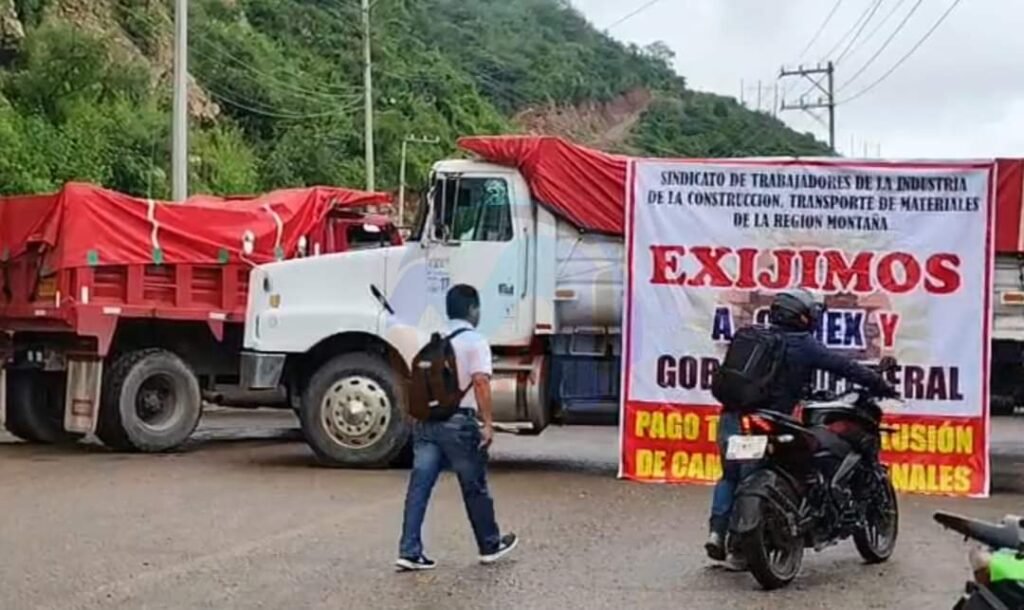 Un grupo de transportistas y camioneros del municipio de Tlapa de Comonfort bloquearon la carretera para protestar en contra de la empresa Cemex, a quien acusan de incumplir con sus pagos y seguros.