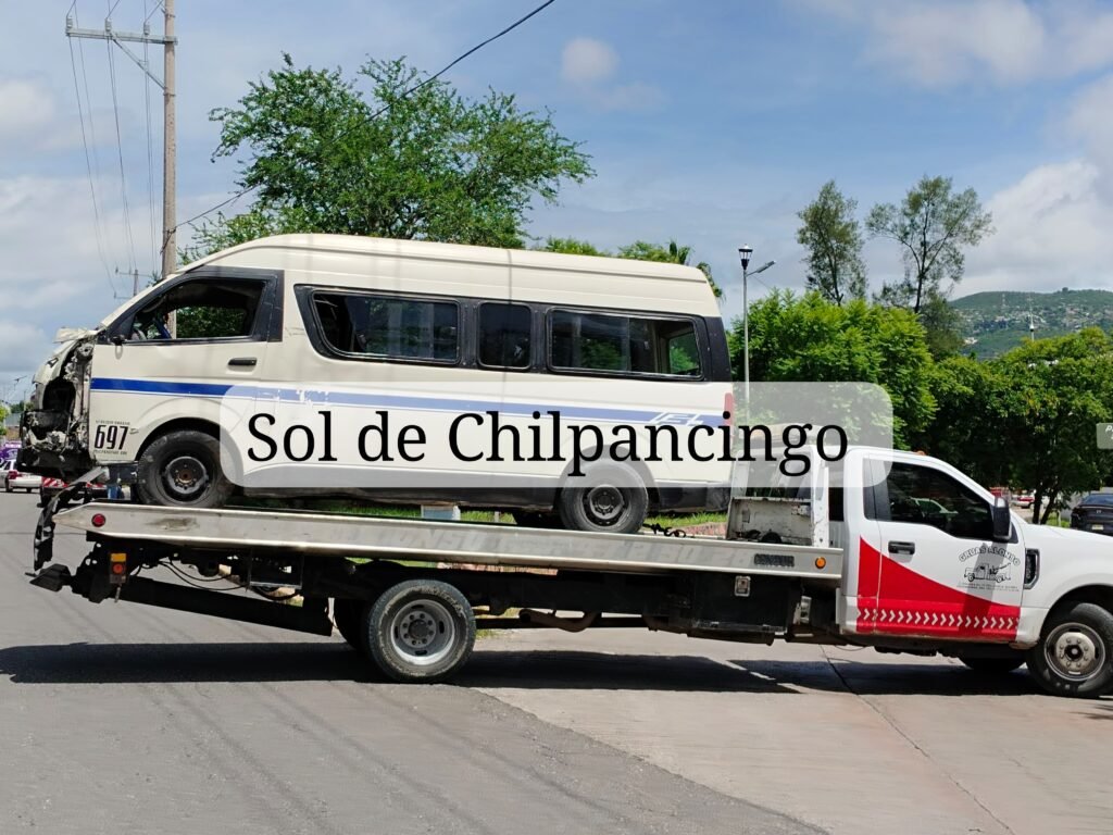Nueve personas con lesiones y daños materiales fue el saldo de un choque de una urvan del servicio público contra la barda de una glorieta cerca del cuartel militar, en Chilpancingo.