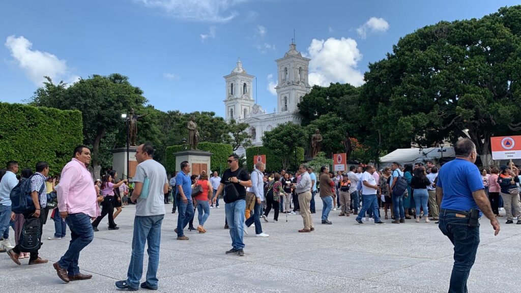 En punto de las 11:00 de la mañana, sonó la alarma sísmica y trabajadores del gobierno municipal, de otros edificios aledaños y la presidenta municipal de Chilpancingo, Norma Otilia Hernández Martínez, salieron a la plaza cívica “Primer Congreso de Anáhuac” para buscar una zona segura, como parte del protocolo de este simulacro.