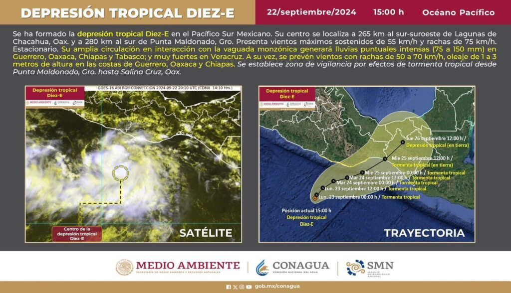 Las autoridades meteorológicas y del Gobierno del estado de Guerrero han confirmado la formación de la Depresión Tropical Diez-E en el Pacífico Sur Mexicano, lo que ha generado una intensa preocupación y nerviosismo entre la población.