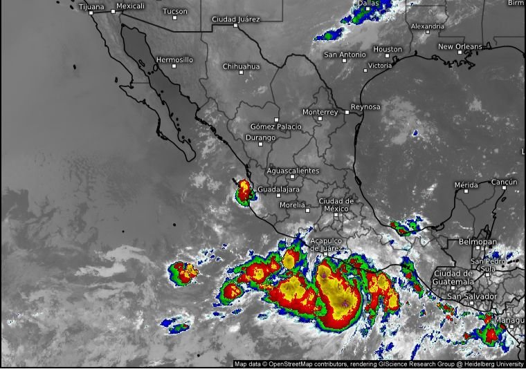 Esta mañana, el centro de la tormenta se localizó también a 250 kilómetros al oeste-suroeste de Puerto Ángel, Oaxaca. “John” presenta vientos sostenidos de 100 kilómetros por hora y ráfagas de hasta 120 kilómetros por hora, moviéndose hacia el nor-noreste a una velocidad de 6 milímetros por hora.