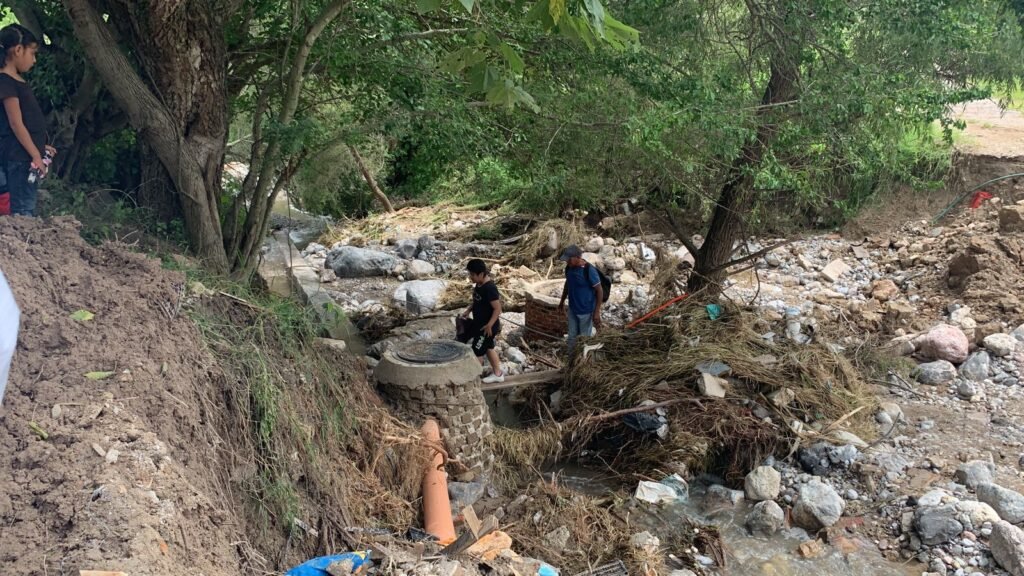 Expresaron que con las lluvias ocasionadas por el huracán “John” la barranca se salió de su cauce cortando el camino de acceso para otras colonias más y quedando a escasos 50 metros de la colonia.