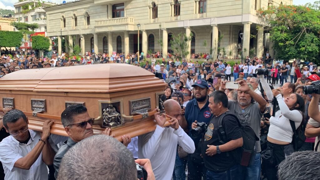 Familiares, amigos y ciudadanos de Chilpancingo despiden entre lágrimas, porras y consignas al presidente municipal de Chilpancingo, Alejandro Arcos Catalán, asesinado la tarde de ayer en esta ciudad capital.