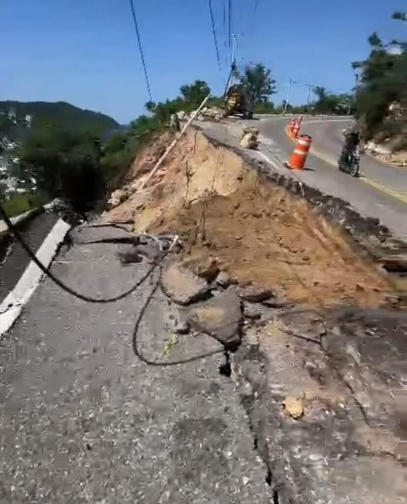 ACAPULCO. —El carril de baja velocidad de la avenida Escénica, en dirección a la glorieta de Puerto Marqués, comenzó a deslavarse en la conocida curva de la S.