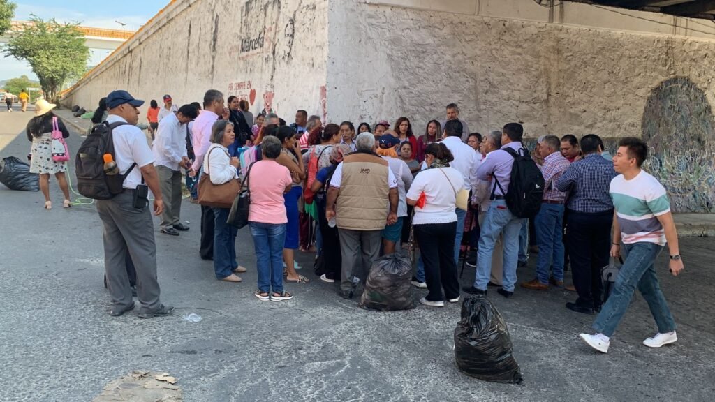 Maestros y padres de familia de la Escuela Primaria “Nicolás Bravo” bloquearon ambos sentidos de la lateral del bulevar Vicente Guerrero, a la altura del puente Ayutla, para exigir que se reanuden las clases en la institución.