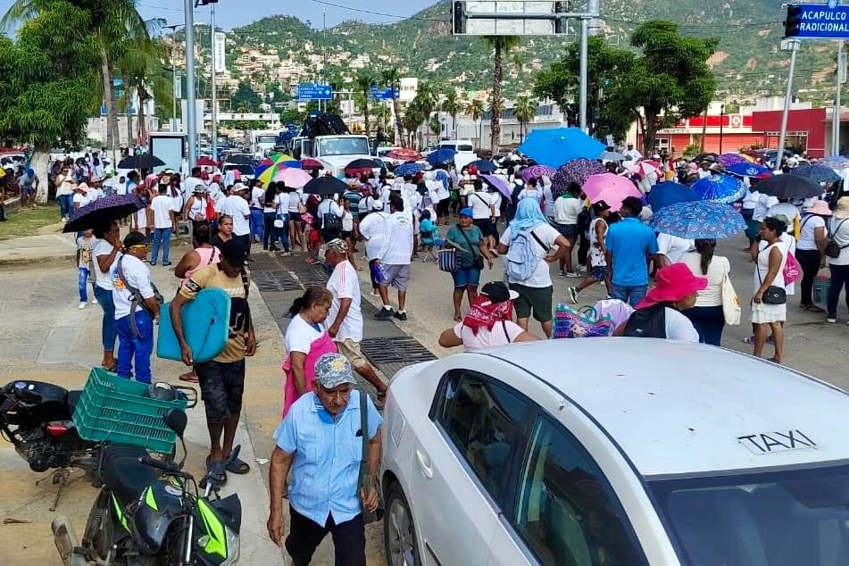 ACAPULCO. —Prestadores de servicios de playa Revolcadero y taxistas de esta ruta, realizaron un bloqueo en el entronque que avanza hacia esta zona para exigir la reconstrucción de sus locales por afectaciones del huracán John.