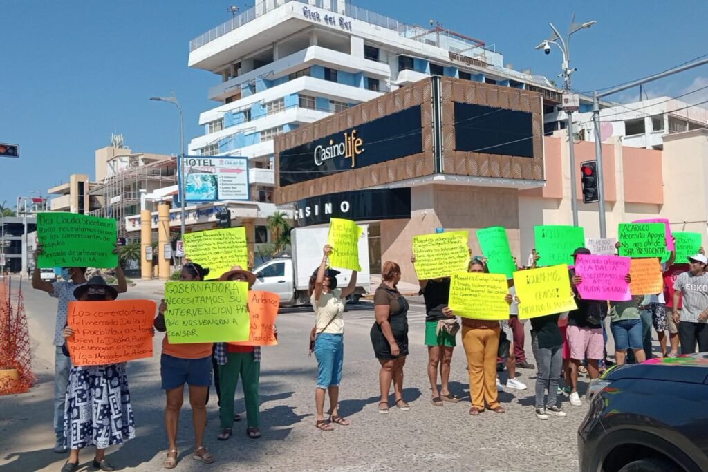 ACAPULCO. —Un grupo de aproximadamente 50 comerciantes realizaron un bloqueo intermitentemente sobre la avenida Costera Miguel Alemán frente al mercado de El Pueblito para exigir ser censados por las afectaciones de las lluvias del huracán “John”.