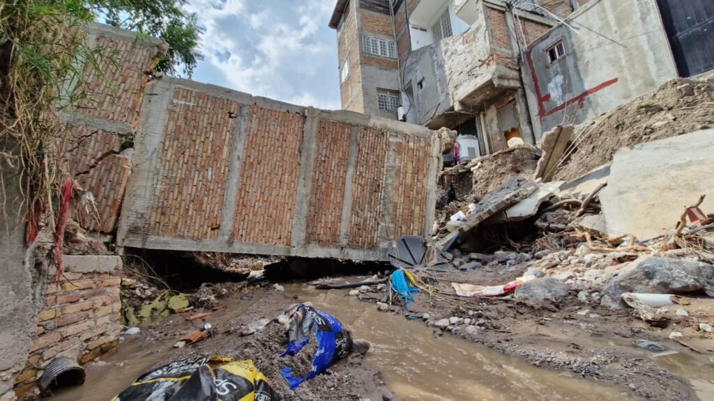 La tarde del sábado una vivienda de tres niveles de la colonia Ampliación Vista Hermosa, colapsó en las inmediaciones de la Barranca Alpoyeca.