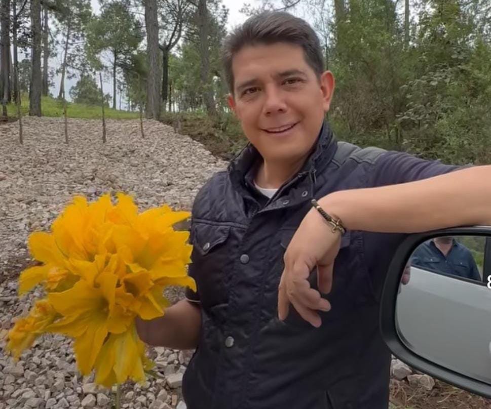En la grabación, difundida a través de Facebook, se ve a Arcos Catalán, en algún punto de la sierra de Chilpancingo, en dónde recogió un ramo de flores de calabaza, el cual era un gesto dedicado a su esposa, Sandy Solís.
