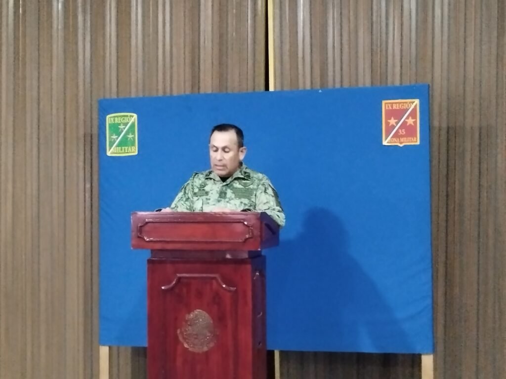El general del Ejército convocó a una conferencia de prensa la tarde de este martes en las instalaciones de la 35 Zona Militar donde dio lectura a un breve comunicado y fue en relación a las 16 personas desaparecidas en las inmediaciones de la comunidad de El Epazote, municipio de Chilapa.