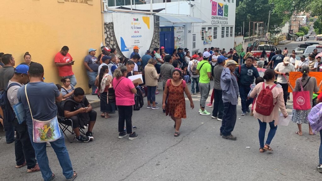 Damnificados por el huracán “John” del municipio de Tixtla, protestaron afuera de las instalaciones del Teatro “María Luisa Ocampo”, en Chilpancingo, lugar en donde se desarrolla la ceremonia de entrega de apoyos a los afectados, para exigir ser incluidos en el censo.