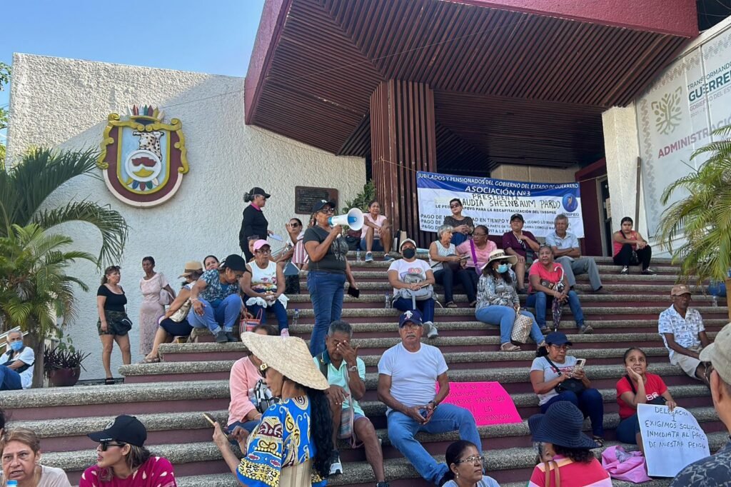 ACAPULCO. —Un grupo de jubilados pertenecientes al Instituto de Seguridad Social de los Servidores Públicos del Estado de Guerrero (ISSSPEG) tomaron las oficinas de la Secretaría de Finanzas y Administración del gobierno estatal en la colonia Costa Azul, para protestar por la falta de pago de su pensión correspondiente a noviembre.