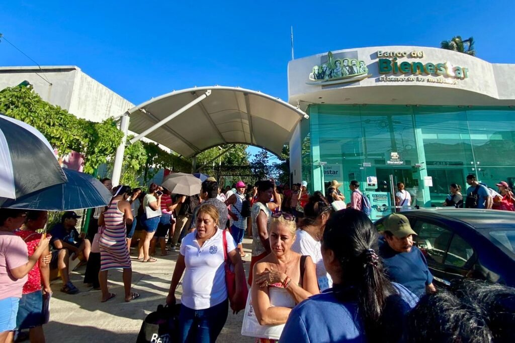 Cientos de madres de familia se reunieron frente a la sucursal del Banco del Bienestar ubicada en el Bulevar Vicente Guerrero de Acapulco, con la esperanza de recibir la tarjeta del programa Beca Benito Juárez.