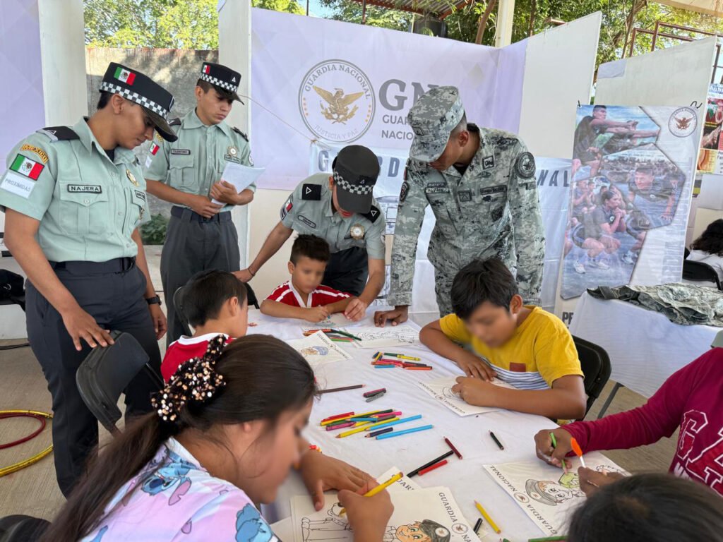 Durante la Feria de Servicios Integrales, organizada por el gobierno estatal, la Guardia Nacional instaló stands informativos y recreativos donde se realizaron diversas actividades, entre las que destacaron: