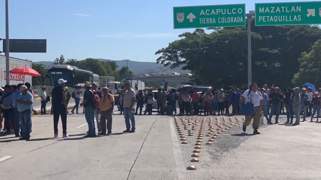 Un grupo de aproximadamente 100 maestros pertenecientes a las Escuelas Preparatorias Populares, bloquearon por más de tres horas, la autopista del sol, a la altura del punto conocido como el Parador del Marqués, para exigir el pago de sus salarios, mejoras en sus condiciones laborales y una audiencias con la gobernadora del estado.