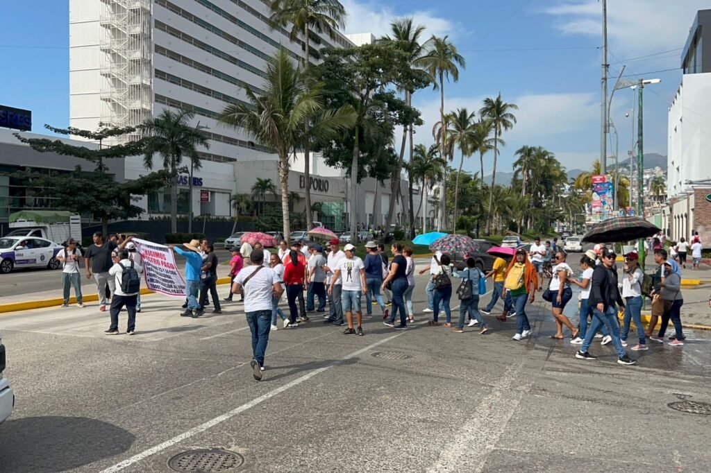 ACAPULCO. —Un grupo de trabajadores del Personal de Apoyo y Asistencia a la Educación (PAAE) en Guerrero se manifestaron en la Costera Miguel Alemán, a la altura de la Diana Cazadora, para exigir el pago de sus salarios, prima vacacional, bono decembrino y respuesta inmediata a sus distintas demandas laborales.