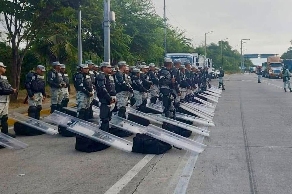 “Llegamos para hacer el bloqueo aquí en la caseta de La Venta y nos encontramos con la triste noticia de que el gobierno nos recibe con la Guardia Nacional, son casi 100 elementos de antimotines y se nos comentó que van a llegar en total de 400 elementos para quitarnos”, explicaron.