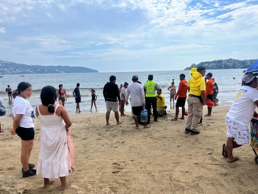 ACAPULCO. —Integrantes de la Guardia Nacional apoyaron en el rescate de un turista que estuvo a punto de ahogarse en la playa Hornos.