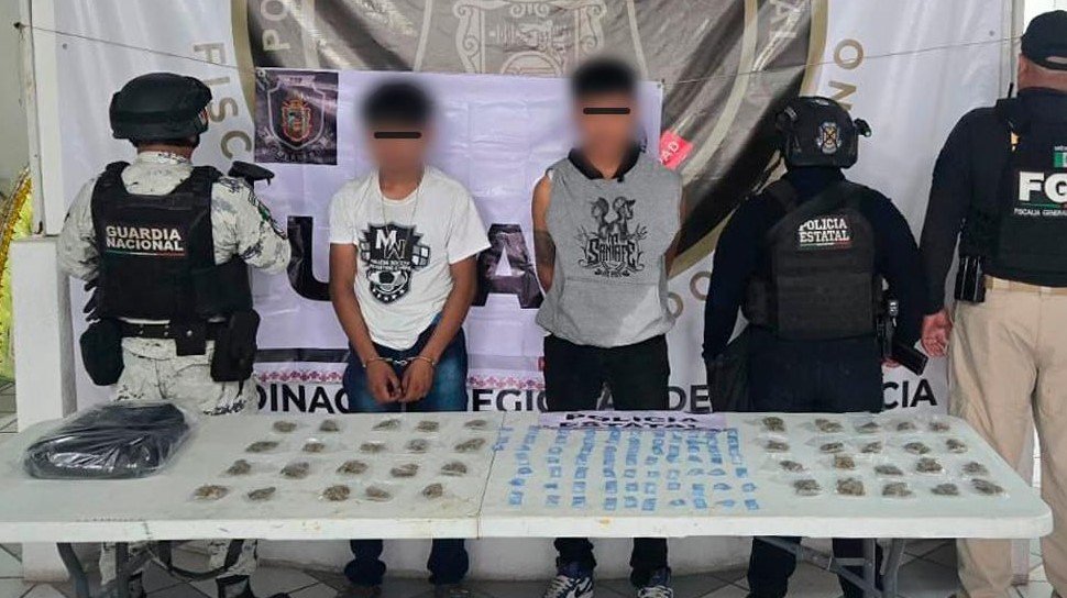 Durante reconocimientos de prevención en inhibición del delito, las autoridades capturaron a estas personas y les aseguraron 73 bolsitas transparentes con la droga conocida como “cristal”, 40 bolsitas con marihuana y una motocicleta que habría sido utilizada para actividades ilícitas.