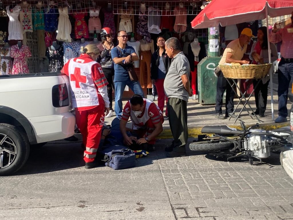 Un chofer de una combi de modelo atrasado impactó a un motociclista; resultando con lesiones de consideración, por lo que fue trasladado a recibir atención médica por paramédicos de Cruz Roja Mexicana.