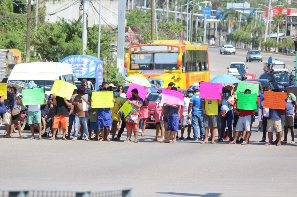 ACAPULCO. —Comerciantes de la Central de Abasto realizaron un bloqueo intermitente en el bulevar Vicente Guerrero para protestar en contra del cateo realizado por fuerzas federales en ese lugar.