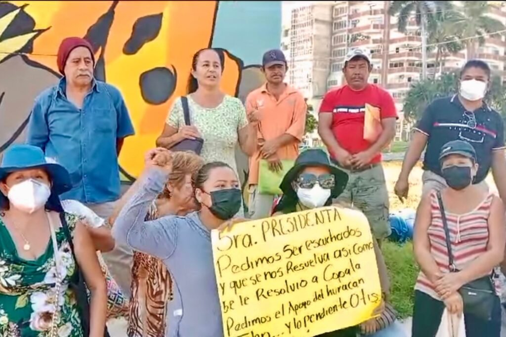 Un grupo de 40 ciudadanos damnificados por el huracán Otis y John se reunieron a las afueras del Centro Internacional Acapulco para exigir a las autoridades federales, la entrega de apoyos económicos y enseres domésticos.