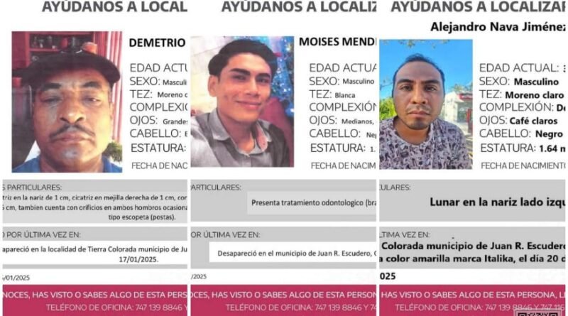 Las desapariciones ocurrieron en fechas distintas: Moisés Mendez Carbajal, de 20 años, y Demetrio Román Calleja, de 51 años, desaparecieron el 17 de enero, mientras que Alejandro Nava Jiménez, de 35 años, desapareció el 20 de enero.