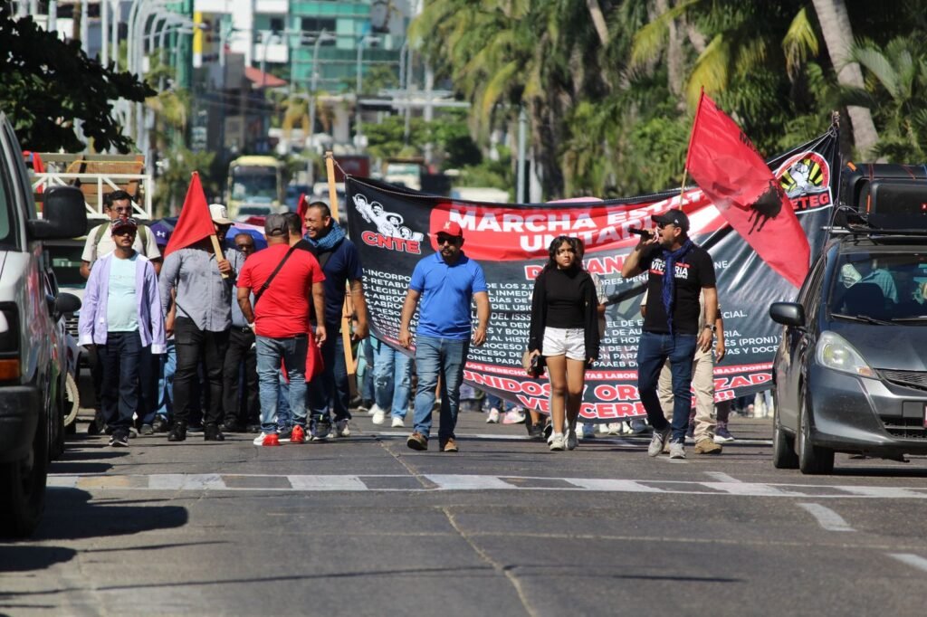 ACAPULCO. —Profesores adheridos a la Coordinadora Estatal de Trabajadores de la Educación Guerrero (CETEG) realizaron una marcha sobre la avenida Costera para exigir una audiencia con el gobierno estatal y plantear sus demandas.