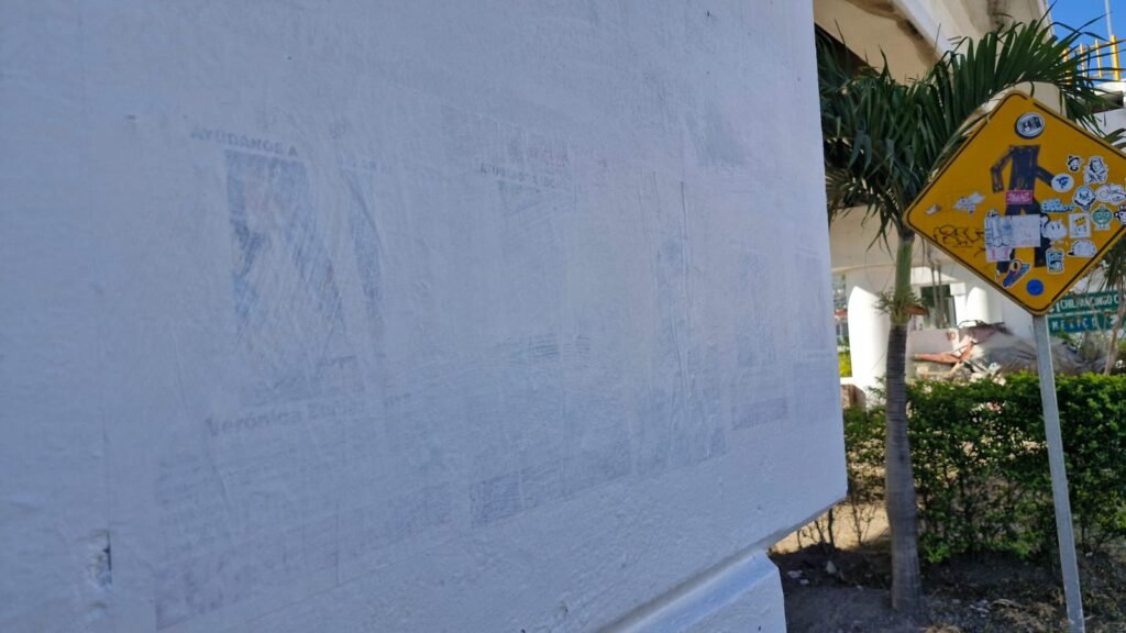 La tarde del martes, trabajadores de esta dependencia municipal fueron captados pintando únicamente el muro donde estaban pegadas las fichas emitidas por la Comisión Estatal de Búsqueda de Personas.