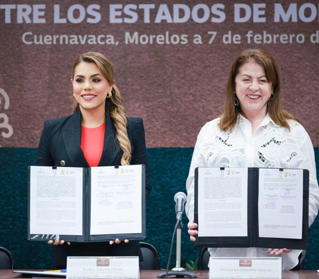 Este viernes la gobernadora acudió a Cuernavaca, Morelos para firmar un convenio por el Bienestar y la construcción de paz con la gobernadora de aquella entidad, Margarita González Saravia.