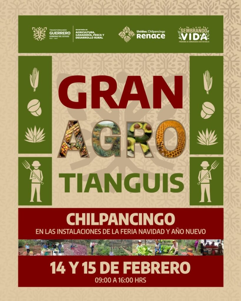 Para fortalecer la economía local y brindar apoyo directo a los productores del estado, el 14 y 15 de febrero se llevará a cabo el primer “Gran AgroTianguis” en Chilpancingo.