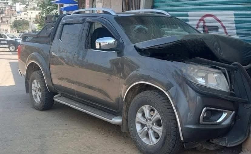 Luego del reporte, policías del municipio se trasladaron al lugar, donde ubicaron una camioneta de color negro, marca Nissan, tipo Frontier, doble cabina y en el interior dos cuerpos sin vida.