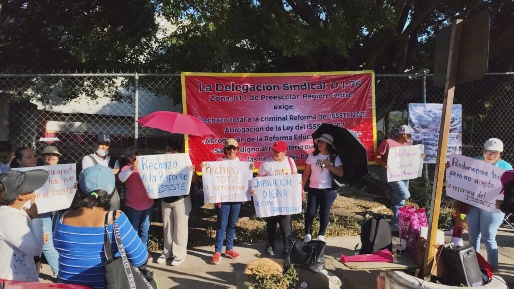 Julia Oryozabal Gonzales, secretaria general de la zona 011 de preescolar, señaló que su movimiento se suma al de 26 estados que de manera simultánea protestan en contra de la reforma de la ley del ISSSTE 2025.