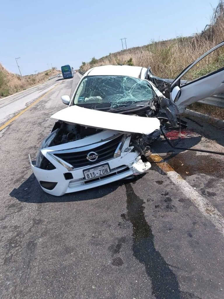 Fue la mañana de este domingo cuando el conductor de un automóvil de color blanco, marca Nissan, placas 815-ZUH del Estado de México, perdió el control del mismo, impactándose contra la barra metálica de contención, justo frente al poblado de El Cortés, perteneciente al municipio ya citado.