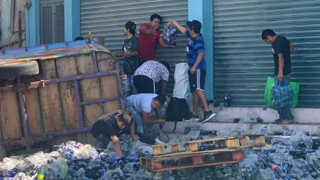 La rapiña de productos se dio incluso a la vista de los elementos de la Guardia Nacional, quienes en ningún momento impidieron que los capitalinos se llevarán los productos.