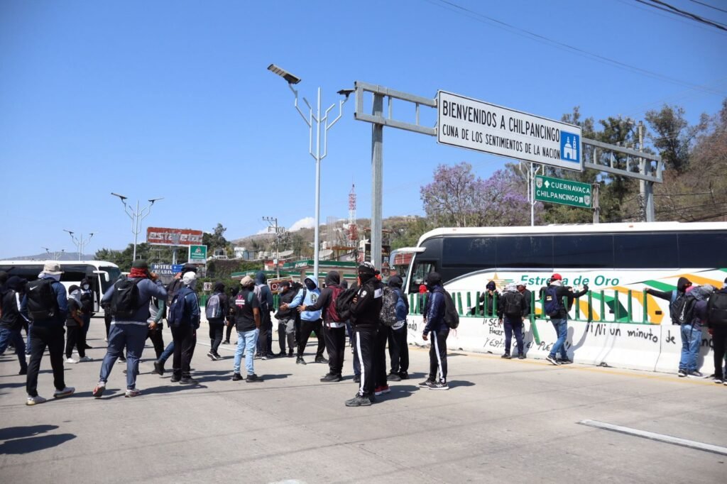 La caravana de autobuses salió de la normal a las 10:30 de la mañana con rumbo a Chilpancingo, pero su camino se detuvo por varias horas a causa de un bloqueo de maestros del SUSPEG en el boulevard a la altura de Invisur.