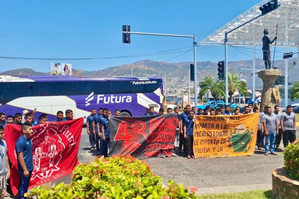 ACAPULCO. —Un grupo de estudiantes de la Escuela Normal Rural de Ayotzinapa realizó un mitin en el antimonumento de los 43, ubicado en la glorieta de la Vía Rápida y la avenida Costera Miguel Alemán.