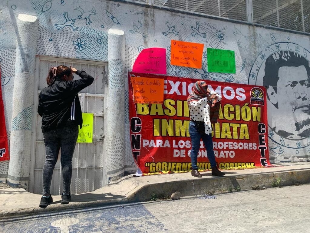 Integrantes de la Coordinadora Estatal de Trabajadores de la Educación en Guerrero (CETEG) protestaron al exterior de la Subsecretaría de Administración y Finanzas de la Secretaría de Eduardo Guerrero (SEG), para exigir basificaciones y recategorizaciones.