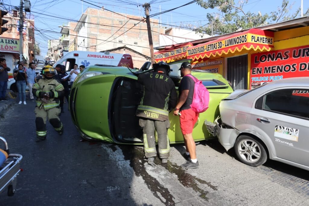 Después impactó el auto Spark el cual volcó y éste último impactó el Aveo que estaba estacionado sobre la calle, también derribó un poste de madera propiedad de Teléfonos de México (TELMEX).