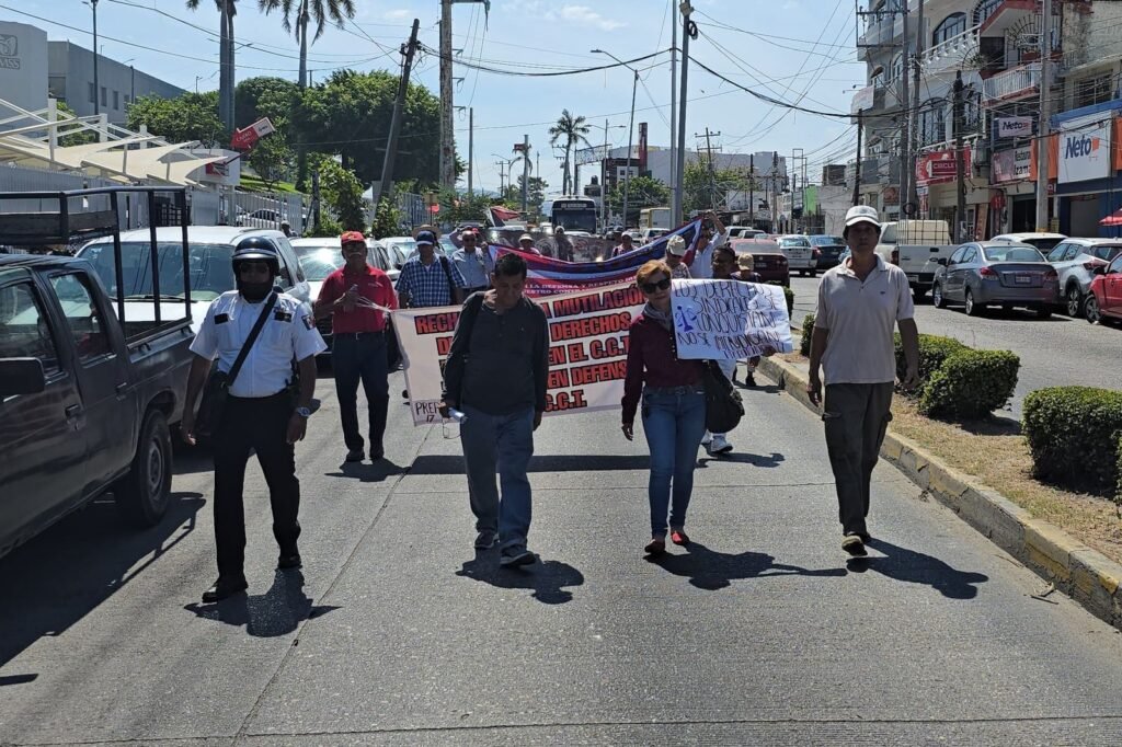 Maestros pertenecientes a distintos planteles de la Universidad Autónoma de Guerrero (UAGro) realizaron una marcha sobre la avenida Ruiz Cortines para manifestar su rechazo a las modificaciones que se pretenden hacer al contrato colectivo del Sindicato de Trabajadores Académicos de la Universidad Autónoma de Guerrero (STAUAG).
