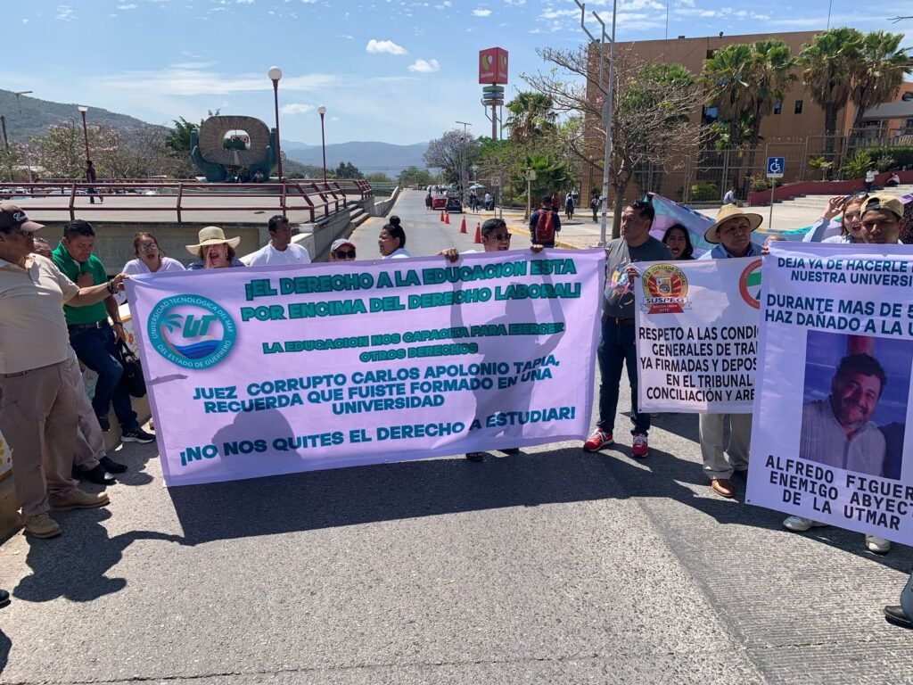 Alrededor de 30 maestros de la Universidad Tecnológica del Mar (UTM) y de la Universidad Tecnológica de Tierra Caliente (UTTC) se manifestaron al exterior del Palacio de Gobierno para exigir la intervención de las autoridades estatales ante conflictos internos que arrastran desde hace ya varios meses.
