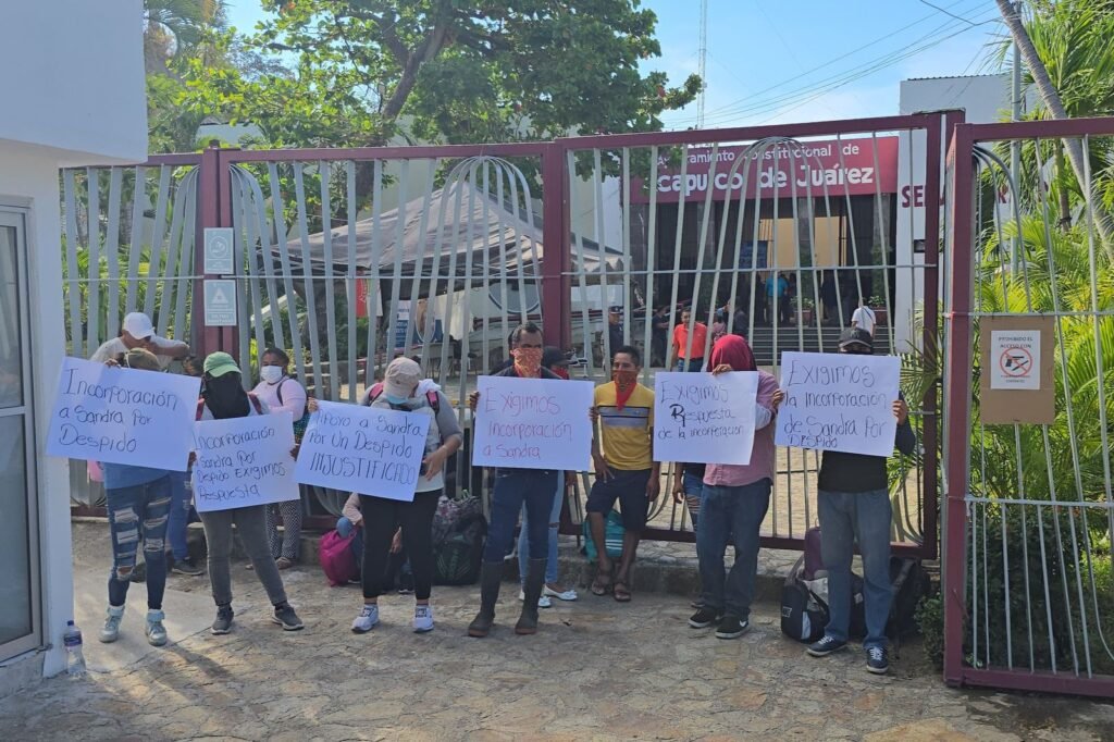 ACAPULCO. —Trabajadores del Ayuntamiento de Acapulco, pertenecientes a la sección 23 del Sindicato Independiente, junto con familiares y amistades de una extrabajadora, bloquearon los accesos principales de Palacio Municipal, ubicado en el Parque Papagayo, en protesta por lo que califican como un despido injustificado.