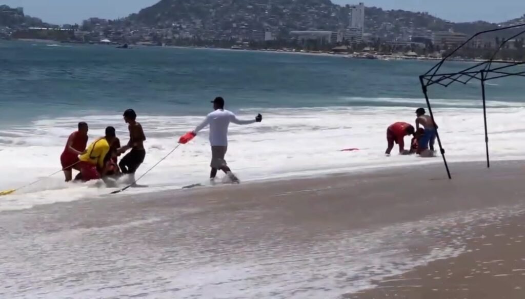 La tarde de hoy, los guardavidas Sai Valente Díaz, Alejandro Martínez, Omar Romero y Pedro Valle, junto con prestadores de servicios turísticos, rescataron a dos jóvenes de 24 y 25 años originarios de Ciudad de México, en playa El Morro, en Acapulco.
