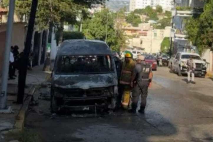 Sujetos armados incendiaron una camioneta del transporte público de la ruta Ex Campo de Tiro – Caleta en la avenida Adolfo López Mateos, justamente al interior del fraccionamiento Las Playas, ubicado en la zona Tradicional de Acapulco.